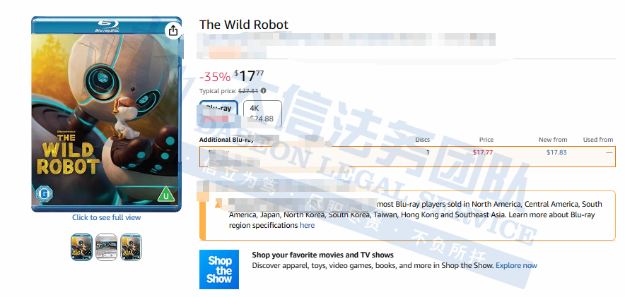 此案为商标+版权维权,涉及The Wild Robot文字商标,还涵盖了主角版权图,以下是涉及商标+版权的具体信息,未经授权不得擅自使用,侵权风险极高,跨境卖家尽快检索下架,避免TRO侵权风险!
