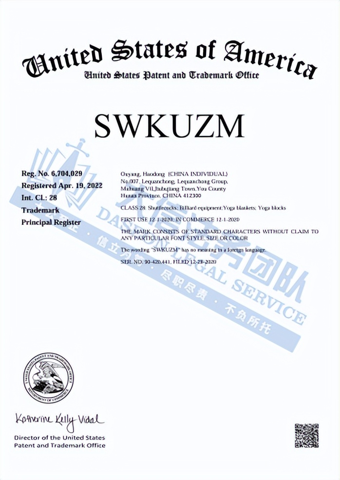 本案为商标侵权,涉及原告SWKUZM瑜伽品牌商标,商标号:NO.6704029等,以下是涉及商标的具体信息,未经授权不得擅自使用,侵权风险极高,跨境卖家尽快检索下架,避免TRO侵权风险!