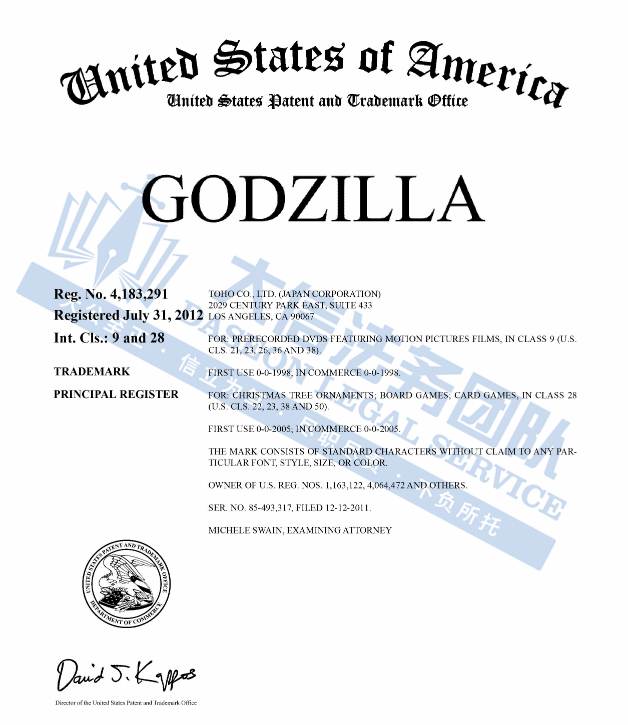 原告是日本知名的电影制片企业,主要从事电影、戏剧和房地产等业务,GODZILLA哥斯拉是Toho Co., Ltd. 于1954年推出的怪兽形象,由本多猪四郎导演的电影GODZILLA哥斯拉使其成为全球知名的流行文化符号,随着系列发展,哥斯拉的角色定位逐渐多元化,既有代表自然力量对抗人类的反派形象,也有保护地球免受更强大威胁的反英雄设定。